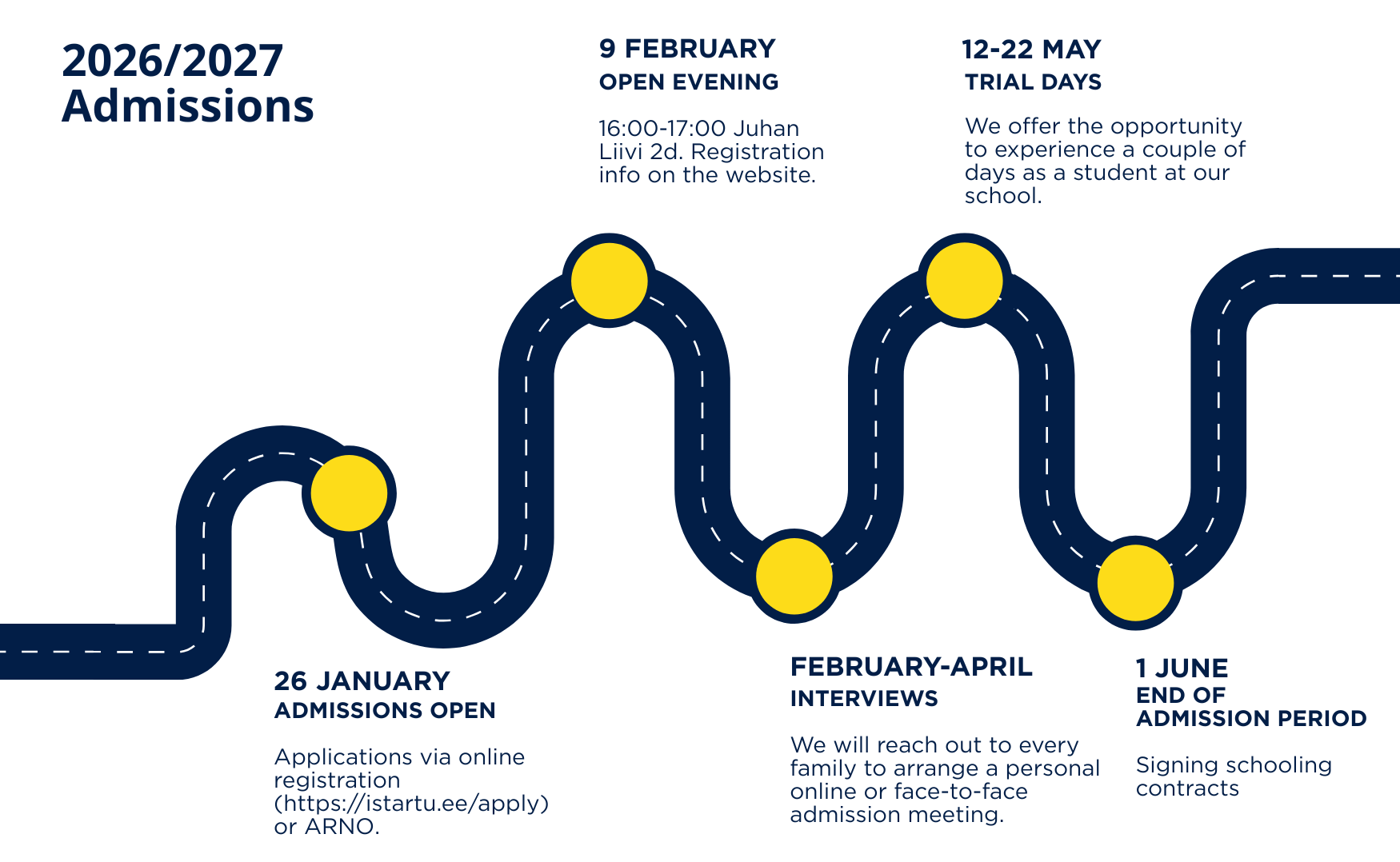 There are currently no open morning events scheduled. For a personal school tour, please contact info@istartu.ee